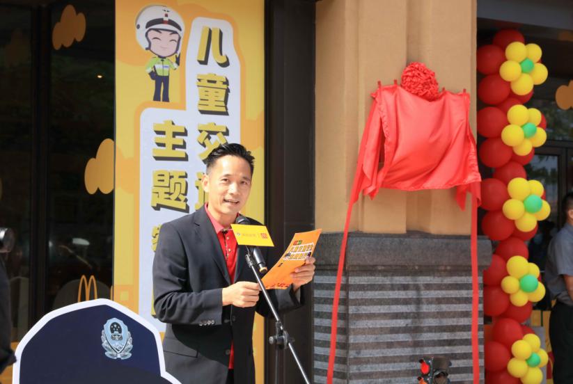 全國首家麥當勞兒童交通安全主題餐廳(深圳市福田區(qū)東海城市廣場餐廳)啟動儀式上,麥當勞深圳市場總經(jīng)理陳影宏致辭