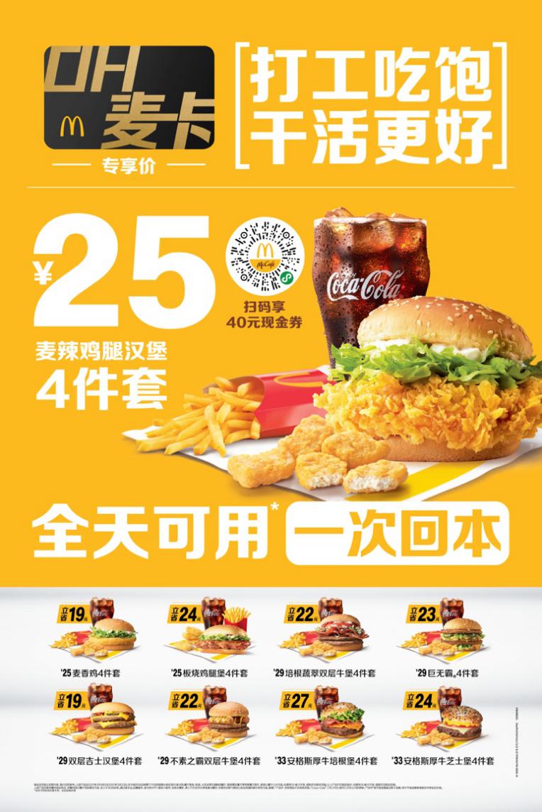 春節(jié)后,針對打工人的需求,麥當(dāng)勞推出“打工人保底計劃”,在多平臺、多場景提供全天候不間斷的多種超值優(yōu)惠,全力支持打工人返工。