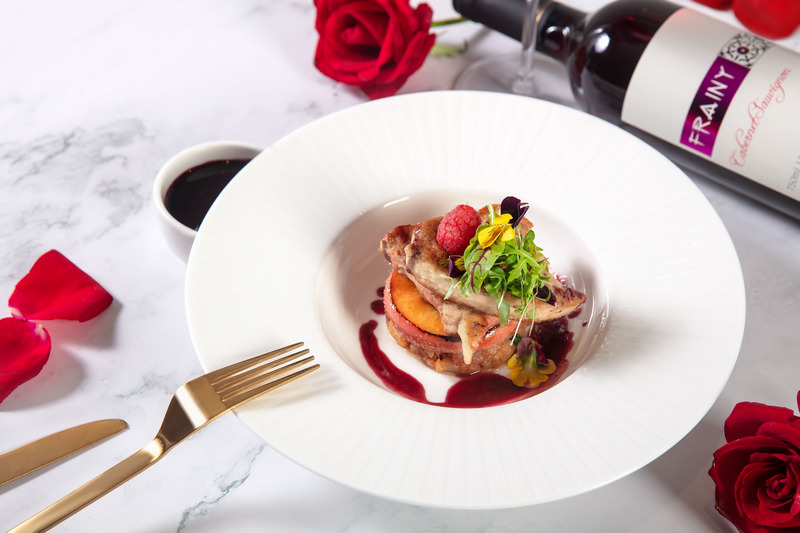 共譜濃情蜜意之夜,怎少得了甜品加乘。酒店餅房行政總廚趙偉以當(dāng)季時令水果搭配馥郁絲滑的上等巧克力等食材,精心呈獻(xiàn)包括覆盆子蜜桃蛋糕、草莓荔枝蛋糕、咖啡白巧克力櫻桃蛋糕、玫瑰花茶紅酒布丁杯等8款作品。此外,位上菜品新增香煎鵝肝配紅酒焦糖蘋果和藍(lán)莓紅酒汁及中式牛奶燉花膠糖水,中西風(fēng)味相輔相成,都將成就獨特的美味記憶。當(dāng)天現(xiàn)場將會有小提琴手駐場演奏,妙音悅耳,為甜蜜之夜增添更多柔情。