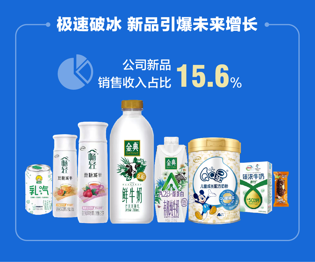 另外,伊利還推出了優(yōu)酸乳“乳汽”氣泡乳、TOORAN來襲黑奶粉、“QQ星”兒童成長配方羊奶粉等健康營養(yǎng)新品,這些能夠滿足消費者健康和品質生活所需的產品,是伊利對消費者信賴的真誠回饋。伊利中報顯示,公司新品銷售收入占比15.6 %,已經成為公司業(yè)績增長的新生力量。