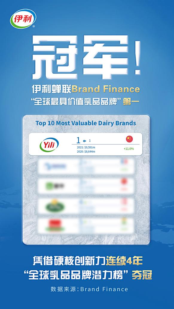 伊利為消費者的傾力付出得到了越來越多消費者的認可,在全球的品牌價值也日益凸顯。在國際權威品牌價值評估機構Brand Finance發(fā)布的榜單中,公司更是蟬聯(lián)“全球最具價值乳品品牌10強”第一名,并連續(xù)4年在“全球乳品品牌潛力榜”中奪冠。