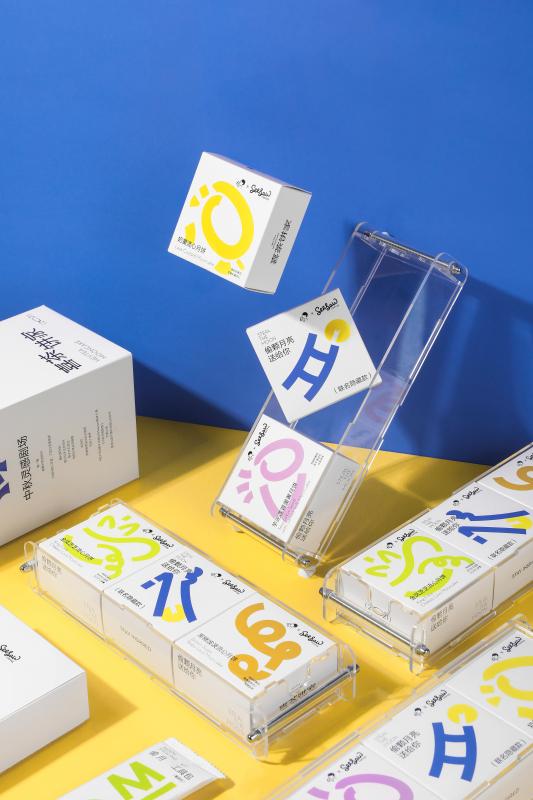 作為和Seesaw聯(lián)名的禮盒,為了增加互動感和cp感,喜茶將“偷顆月亮送給你”的主題在外包裝設(shè)計(jì)上加以延展,設(shè)定了“互偷月亮”的概念,將靈感注入外包裝設(shè)計(jì)中以圖形上的方圓結(jié)合、顏色上的簡約和諧,以及喜茶和Seesaw特有元素的交相呼應(yīng),為消費(fèi)者帶來兼具互動性、包容性的視覺體驗(yàn)。方圓的簡約圖形結(jié)合馬克筆筆跡式的設(shè)計(jì)元素,給人以想象空間。同時,結(jié)合代表“夜晚”的“藍(lán)色”和代表“月亮”的“黃色”這兩種顏色系統(tǒng)的運(yùn)用,進(jìn)一步對主題加以呈現(xiàn)。禮盒整體上則突破傳統(tǒng)的橫放型禮盒式樣,采用直立型包裝,令人耳目一新。每一處設(shè)計(jì),都延續(xù)了喜茶靈感。