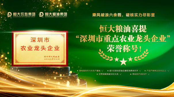 ?恒大糧油斬獲“深圳市重點農(nóng)業(yè)龍頭企業(yè)”稱號