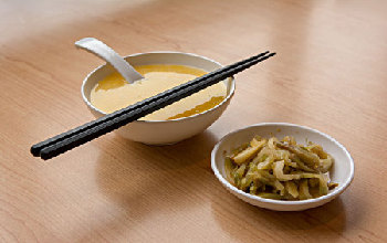 水:米為12:1,砂鍋中放入水煮開后,再放入米和豆腐皮,煮開轉小火,放入色拉油,小火30分鐘左右,關火燜半小時。