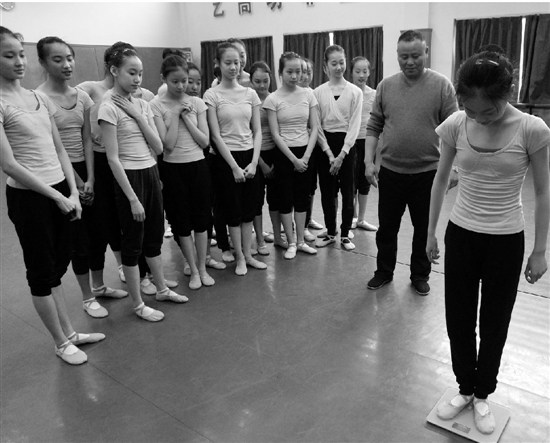 班長杜婉琳說,其實稱體重是舞蹈系的慣例,不僅開學(xué)會稱,每個月,甚至每周老師都會抽查體重。“青春期的女孩是容易胖,一般讓她們多吃魚,營養(yǎng)能保證,也不容易胖?!弊蛱熵?fù)責(zé)上課的王老師說。