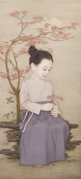 “我畫了我女兒第一張油畫,就覺得她形象很好,一個小青花的背心,頭上扎了一個小髻兒,很有中國傳統(tǒng)兒童的氣質(zhì)。我就想到利用中國元素的豐富畫面,把孩子的氣質(zhì)融合進去。在這個基礎(chǔ)上能做到融合,就是一種不一樣的風格的出現(xiàn)?!比f里說,把女兒作為繪畫題材的創(chuàng)作中,得到了莊老師的很多提點,因為中國目前沒有這方面的探索,更多的是像徐悲鴻、林松年這樣對中國“意象”的探索。