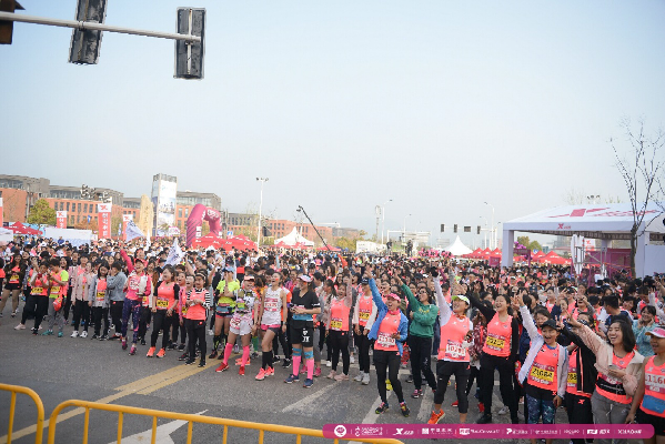 今年賽事現(xiàn)場最大的亮點在于,取消了開賽儀式,僅保留鳴槍一項流程。主會場起點區(qū)域沒有了大型噴繪的主席臺,取而代之的是小巧簡約的發(fā)令臺。上午7點,不間斷的熱身音樂響徹整個甜蜜小鎮(zhèn),運動員們在進入賽道集結(jié)后,配合著音樂,跟隨著健身教練的指引一起熱身。上午8點30分,鳴槍嘉賓們準時登臺鳴槍,全體3000多名跑者一起沖出起點門,化作一片粉紅色的海洋,向著終點奔去?!叭∠_賽儀式對跑者來說是非常貼心的一項舉措,讓我們在進入賽道之后依然能夠繼續(xù)熱身,時間一到準時開跑,整個參賽流程也更加流暢了?!眳①愡x手在賽事現(xiàn)場直言道,簡化起跑前的儀式流程,對于跑者來說是一種更好的參賽體驗。