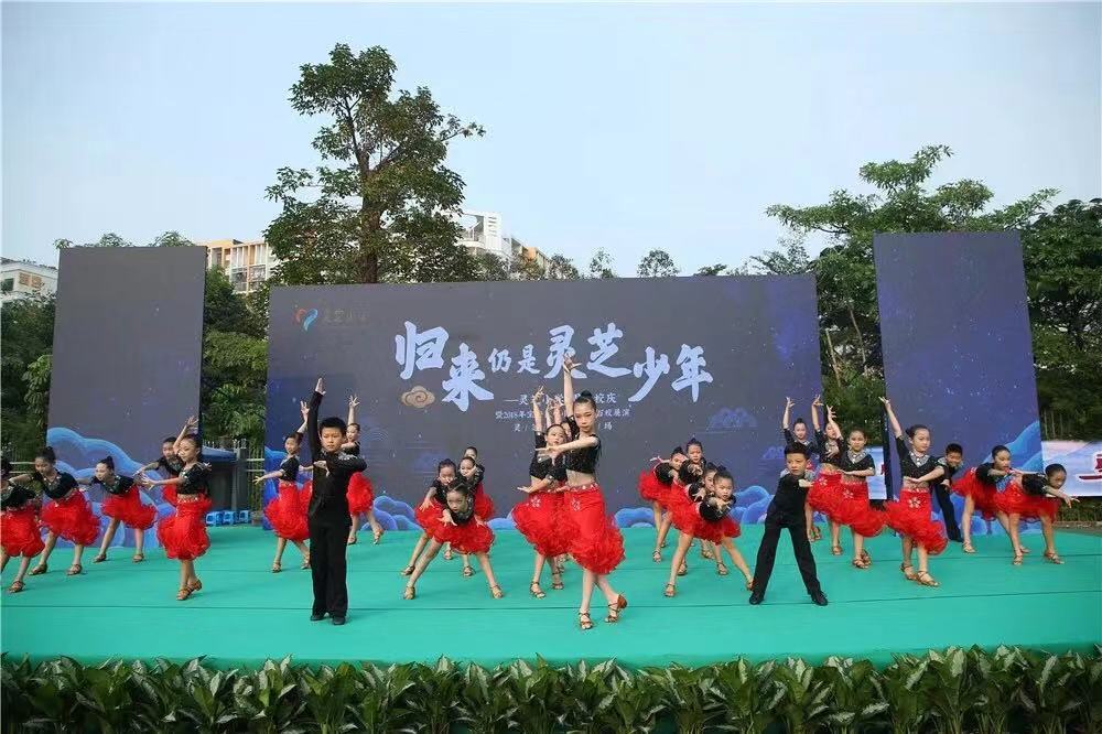 校慶當(dāng)天,近兩個小時的“歸來仍是靈芝少年”的展演,編排精巧,分萌芽、追夢、綻放、芳華、展望五個篇章,有合唱、師生舞蹈、健美操、詩歌朗誦、器樂表演等。整臺節(jié)目既生動反映了靈芝小學(xué)從無到有,從小變大的發(fā)展歷程,更全面展示了學(xué)校五年來砥礪前行所取得的累累碩果。