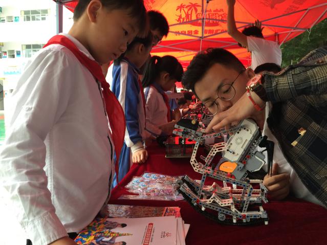 同期,愛匯百變教育科技有限公司也給同學(xué)帶來了炫酷多彩的編程大餐。通過對EV3編程機(jī)器人項目LEGO方針機(jī)械機(jī)構(gòu)以及LEGO圖形化編程展示,邀請現(xiàn)場同學(xué)進(jìn)行對套件進(jìn)行組裝、編程控制,普及編程和電磁感應(yīng)現(xiàn)象、電動基本原理、電路等物理知識,鍛煉學(xué)生科學(xué)創(chuàng)造思維,培養(yǎng)學(xué)科興趣。