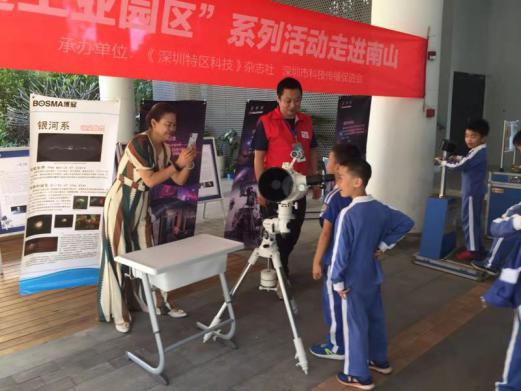 此外,深圳優(yōu)之陽科技有限公司的“一對(duì)一遠(yuǎn)程”在線教學(xué)項(xiàng)目給同學(xué)們配備“貼身名師”,隨時(shí)給同學(xué)們排憂解惑,深受同學(xué)歡迎;深圳諾必達(dá)節(jié)能環(huán)保有限公司的智能機(jī)器人能嗨聊、講故事、陪伴學(xué)習(xí)、搜索,還能作為溝通父母的橋梁,搖身變成同學(xué)們的良師益友,吸引大批同學(xué)前來互動(dòng)體驗(yàn);中廣和(深圳)科技有限公司給同學(xué)們開展實(shí)用技能公益培訓(xùn),給同學(xué)們帶來一頓豐富的技能盛宴;深圳市鵬城光學(xué)望遠(yuǎn)鏡有限公司則帶同學(xué)們揭秘太空......