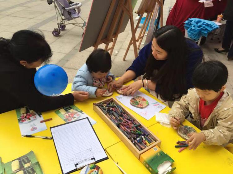 市民在體驗(yàn)?zāi)緣K繪畫(huà)項(xiàng)目