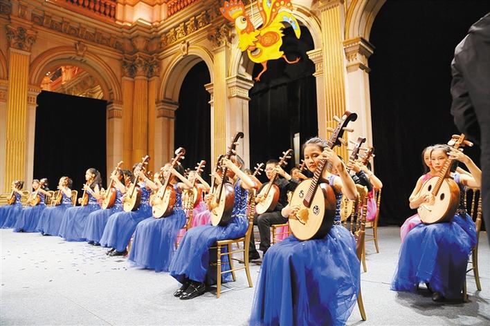 ●2017年2月,受巴黎市政廳邀請,少兒阮樂團赴法國參加新年晚會,轟動歐洲,成為國內(nèi)第一支受邀在巴黎市政廳演出的少兒阮樂團,接受駐法大使翟雋和巴黎市長的親切接見。