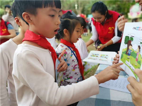 據(jù)悉,本次活動(dòng)以闖關(guān)的形式,每年級(jí)各分10個(gè)關(guān)卡,每闖一關(guān)就獲得一個(gè)能量動(dòng)物或者能量植物填補(bǔ)闖關(guān)卡的空白,各年級(jí)的學(xué)生需要在半小時(shí)內(nèi)將闖關(guān)卡的空白處填滿(mǎn),才算闖關(guān)成功,獲得有校長(zhǎng)贈(zèng)言的書(shū)籍一本。關(guān)卡的設(shè)置以語(yǔ)文、數(shù)學(xué)和英語(yǔ)三個(gè)科別組成,其中,最受孩子們青睞的要數(shù)“筆架說(shuō)話(huà)”這個(gè)關(guān)卡,孩子們把自己相像成筆架山的一員,然后介紹自己,有同學(xué)說(shuō):“我是筆架山的大樹(shù),我可以給大家遮蔭,讓大家不用被太陽(yáng)曬到?!薄ⅰ拔沂枪P架山的石頭,孩子們來(lái)筆架山玩的時(shí)候,可以把我們拼在一起做拼圖?!薄ⅰ拔蚁氤蔀楣P架山的暗綠繡眼鳥(niǎo),就是嘴巴尖尖的,頭上綠綠的,眼睛邊上有點(diǎn)白色的那種,我要站在筆架山的枝頭上盡情歌唱,紅紅的火焰花為我做背景!”......孩子們通過(guò)豐富的相信力,盡情在老師與家長(zhǎng)義工面前展現(xiàn)臨場(chǎng)的表達(dá)能力。