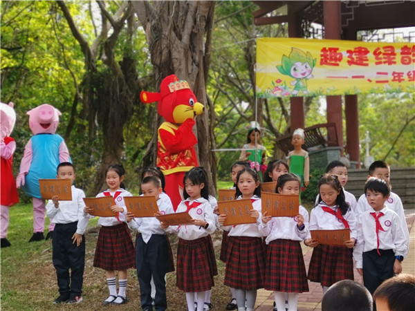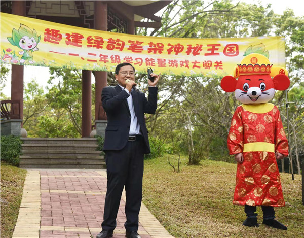 在鳥(niǎo)語(yǔ)相伴下,深圳市學(xué)生文聯(lián)秘書(shū)長(zhǎng)謝晨的講話(huà)拉開(kāi)本次活動(dòng)的序幕,他贊揚(yáng)了華新小學(xué)學(xué)生們學(xué)業(yè)上的優(yōu)秀表現(xiàn),肯定本次活動(dòng)寓教于自然的教學(xué)方式,也表達(dá)了多次參加華新小學(xué)的活動(dòng)的喜悅之情。隨后,每個(gè)年級(jí)各準(zhǔn)備了兩個(gè)節(jié)目為現(xiàn)場(chǎng)帶來(lái)歡樂(lè)的氣氛,“綠韻筆架?趣建我的學(xué)習(xí)能量王國(guó)”活動(dòng)正式開(kāi)始,學(xué)生們紛紛往自己年級(jí)的活動(dòng)區(qū)域飛奔而去。