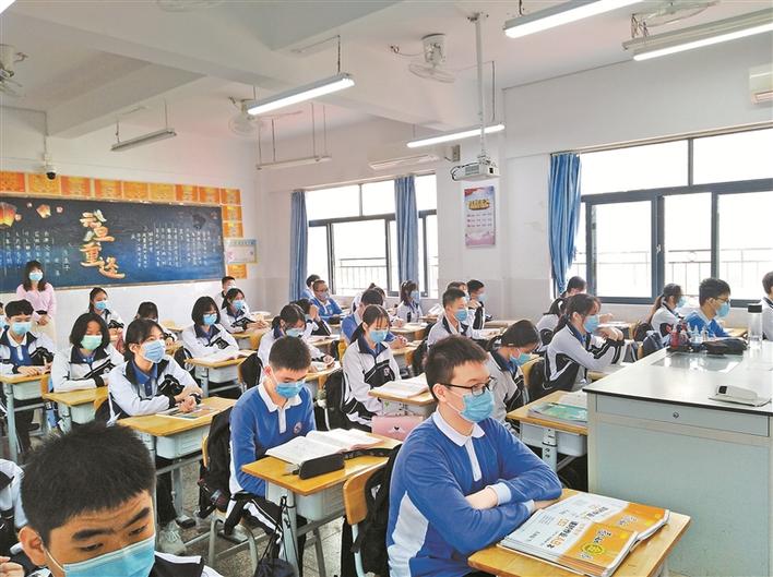 上午10∶30,南山外國(guó)語學(xué)校(集團(tuán))高級(jí)中學(xué)的學(xué)生們整理完住校宿舍用品后,相繼來到班級(jí)進(jìn)行自習(xí)。自習(xí)前在班主任的安排下首先進(jìn)行課桌椅的消毒,隨后發(fā)放口罩,每位學(xué)生一次性領(lǐng)取一周所用的10個(gè)口罩。