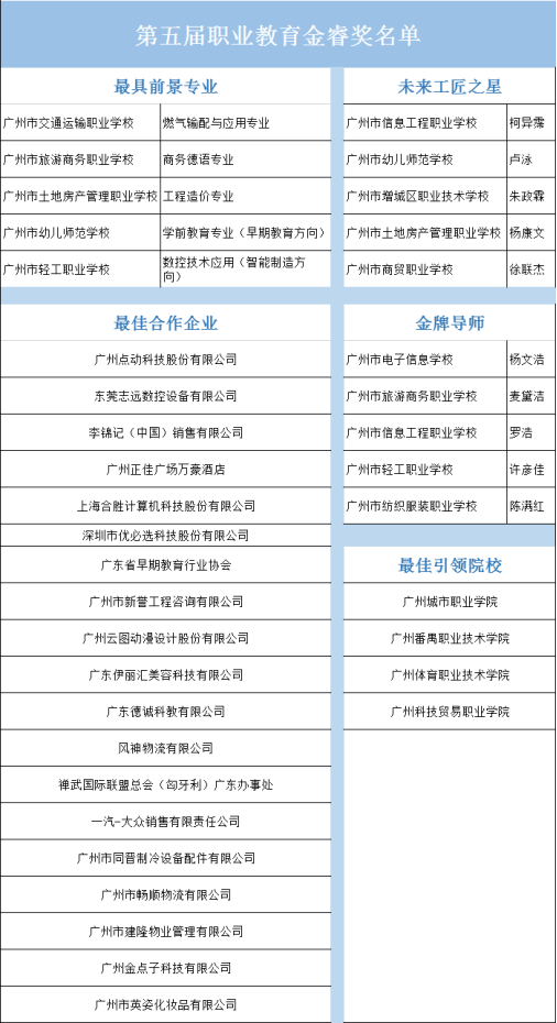 注:“第五屆職業(yè)教育金睿獎(jiǎng)”名單由線上點(diǎn)贊數(shù)據(jù)統(tǒng)計(jì)及線下專家評(píng)審團(tuán)相關(guān)綜合評(píng)定意見得出。