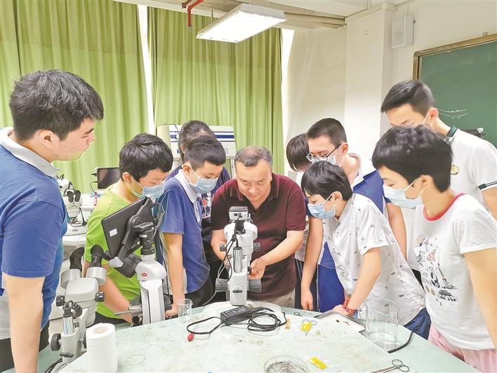 這里有高水平教練團(tuán)隊(duì)。深外校長羅來金說:“學(xué)貴得師,只有高水平教練團(tuán)隊(duì),才能培養(yǎng)出拔尖創(chuàng)新的人才。”學(xué)校在教練隊(duì)伍上突出“三重”:一重師德修養(yǎng)高尚,要求教練不僅要做“經(jīng)師”,更要做“人師”,有愛心,講奉獻(xiàn),全程陪同學(xué)生,專心指導(dǎo),潛心育人,立志為祖國培養(yǎng)創(chuàng)新人才;二重團(tuán)隊(duì)結(jié)構(gòu)優(yōu)化,既有一大批培養(yǎng)國家學(xué)科競賽金牌的知名資深教練,也有近年啟動(dòng)“鳳凰計(jì)劃”從清華、北大等知名高校引入高素質(zhì)的博士和全國海選招攬的著名金牌教練;三重團(tuán)隊(duì)高位發(fā)展,實(shí)行主教練制,倡導(dǎo)團(tuán)隊(duì)精神,注重協(xié)同合作,并通過“走出去、請(qǐng)進(jìn)來、沉下去、提上來”,高位鏈接優(yōu)質(zhì)資源,實(shí)現(xiàn)教練隊(duì)伍的再提升和高位發(fā)展:現(xiàn)已構(gòu)建具有學(xué)科競賽優(yōu)勢,知名資深教練、金牌教練、頂級(jí)名校博士相結(jié)合的高水平教練團(tuán)隊(duì)。
