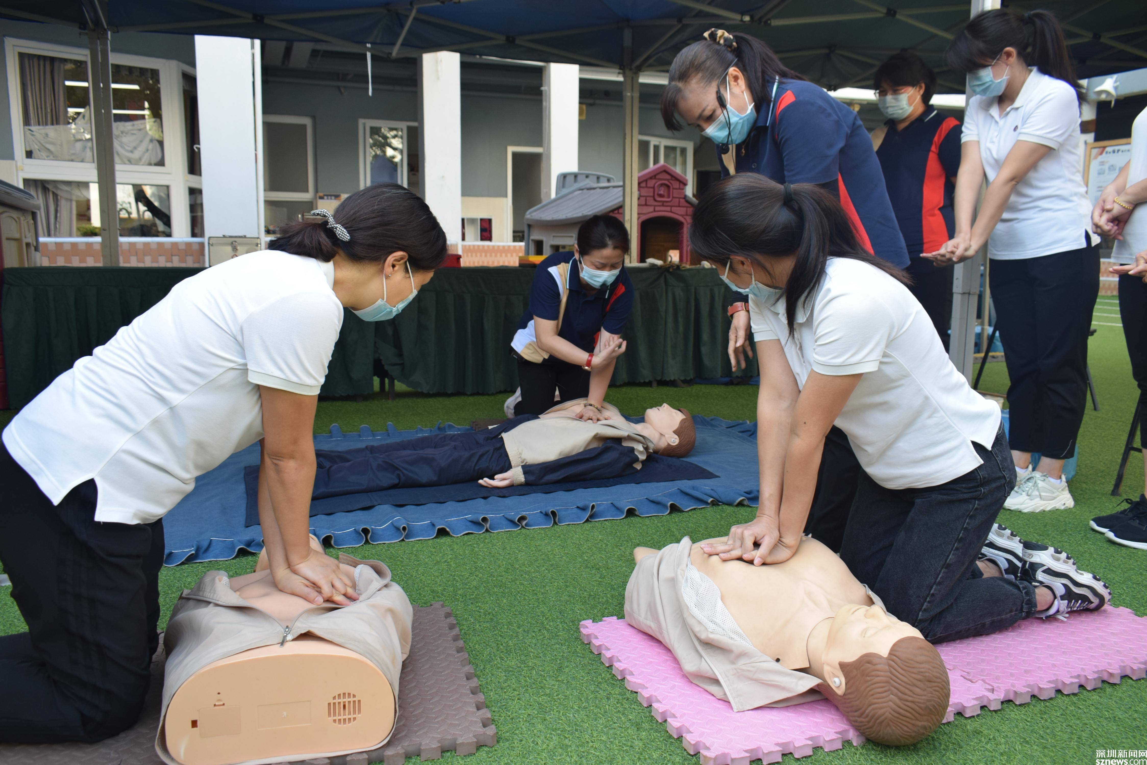 大鏟社區(qū)還組織全園教職工進(jìn)行心肺復(fù)蘇訓(xùn)練和骨折包扎訓(xùn)練。教職工們?cè)诎踩蠋熞粚?duì)一指導(dǎo)與糾正下,反復(fù)訓(xùn)練,基本掌握了心肺復(fù)蘇和骨折包扎步驟及動(dòng)作要點(diǎn)。