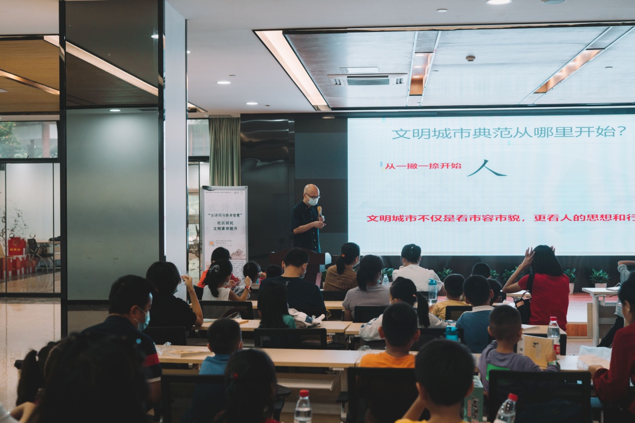 “為什么從《少年愛詩詞》書中篩選相關(guān)詩句開展新時代文明實踐活動?”劉建彪老師風(fēng)趣地提問,“深圳市民公約的基本準(zhǔn)則是‘熱愛祖國、建設(shè)深圳、開拓創(chuàng)新、團結(jié)奉獻、敬業(yè)盡職、服務(wù)公眾、遵紀(jì)守法、公平競爭、文明禮貌、愛護環(huán)境’,古詩詞蘊含的修身智慧可以幫助我們更好地理解深圳市民公約基本準(zhǔn)則,思想轉(zhuǎn)變了,行動就成為自覺?!?/p>