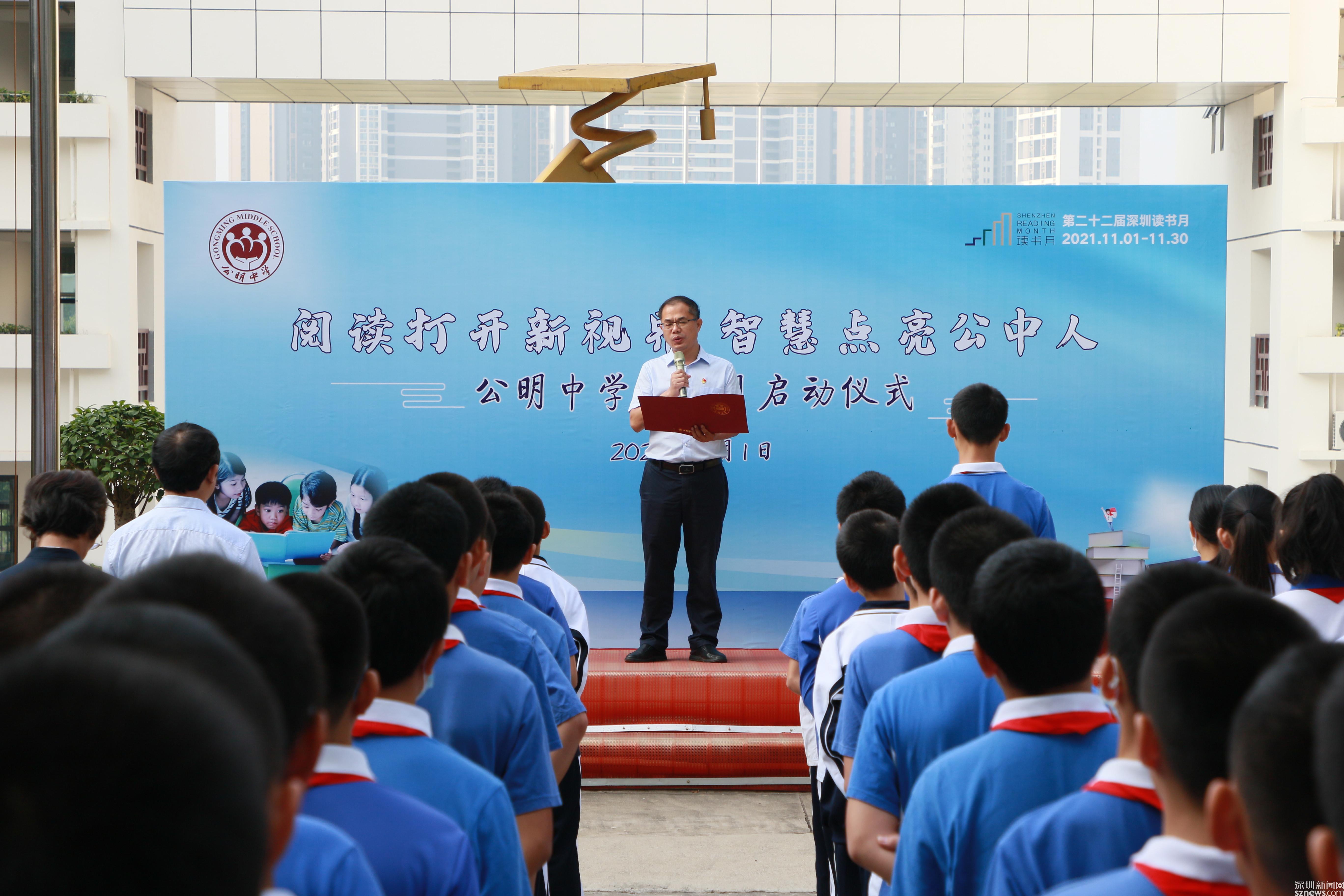 讀特客戶端·深圳新聞網(wǎng)2021年11月2日訊 (記者 曹園芳 通訊員 丘翹楚 劉小云 曾靜敏)為弘揚(yáng)“尊重知識(shí)崇尚文明”的閱讀理念,培養(yǎng)師生良好的閱讀習(xí)慣,營(yíng)造智雅的學(xué)習(xí)氛圍,塑造濃郁書香學(xué)習(xí)型校園,11月1日上午,深圳市光明區(qū)公明中學(xué)組織開(kāi)展了本年度讀書月啟動(dòng)儀式,全校師生參加了活動(dòng),活動(dòng)由初二(5)班譚欣怡同學(xué)主持。