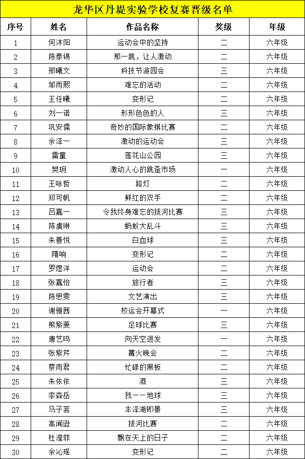 冰心文學(xué)盛典 | 龍華區(qū)丹堤實驗學(xué)校晉級復(fù)賽名單公布