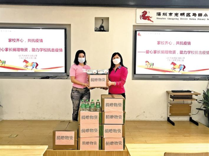 近日,光明區(qū)馬田小學(xué)六(3)班羅心如家長向?qū)W校捐贈口罩1000只、消毒液200瓶等愛心物資。