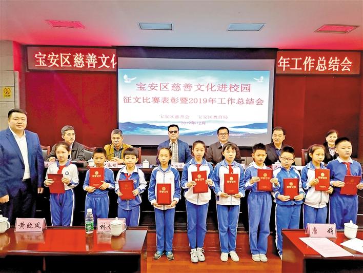 寶安區(qū)慈善文化進校園征文比賽表彰暨2019年度工作總結(jié)會在寶安實驗學校會議室舉行。會上對征文比賽獲獎?wù)吆蛢?yōu)秀組織單位進行表彰。