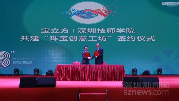寶立方與深圳技師學(xué)院就“共建珠寶創(chuàng)意工坊”、“專業(yè)技能競賽活動”舉行了校企合作簽約儀式