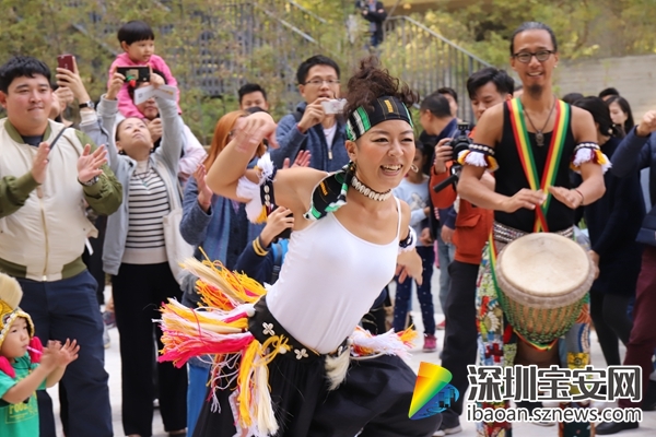 “冬添集市”分為六大板塊,包含:“添趣”“添織”“添耕”“添音”“添物”“添食”,其中最熱鬧的就要數(shù)主舞臺(tái)區(qū)的“添音”展區(qū),JAMMALA樂隊(duì)和非錄音樂俱樂部連續(xù)兩日,準(zhǔn)點(diǎn)帶來音樂表演。JAMMALA樂隊(duì)是由一群來自世界各地鼓友們成立的一支非洲傳統(tǒng)打擊樂隊(duì),10日下午3:30,熱情洋溢的鼓聲在泰華梧桐島響起,伴隨著歡快的舞蹈,不少參觀市民加入到游街表演的隊(duì)伍中來,禁不住一起跳起來,唱起來,現(xiàn)場(chǎng)活動(dòng)氣氛熱烈。