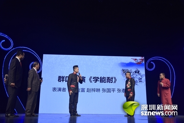其后還有中國(guó)快板藝術(shù)委員會(huì)主任、著名快板書(shū)表演藝術(shù)家、非物質(zhì)文化遺產(chǎn)傳承人、中國(guó)曲藝牡丹獎(jiǎng)得主李少杰帶來(lái)的經(jīng)典快板《天安門廣場(chǎng)看升旗》,質(zhì)樸的詞句,充沛的情感,以看升旗為出發(fā)點(diǎn),表達(dá)的都是對(duì)國(guó)家的熱愛(ài);古文新說(shuō)題材的相聲《趣說(shuō)文言文》,帶來(lái)了頗為新鮮的體驗(yàn);還有以深圳市鹽田區(qū)抗戰(zhàn)時(shí)期的真人真事改編的評(píng)書(shū)《龍嘴兒》、傳統(tǒng)相聲《大保鏢》和《學(xué)歌曲》等,曲種豐富多樣,令全場(chǎng)掌聲雷動(dòng),觀眾們贊不絕口。