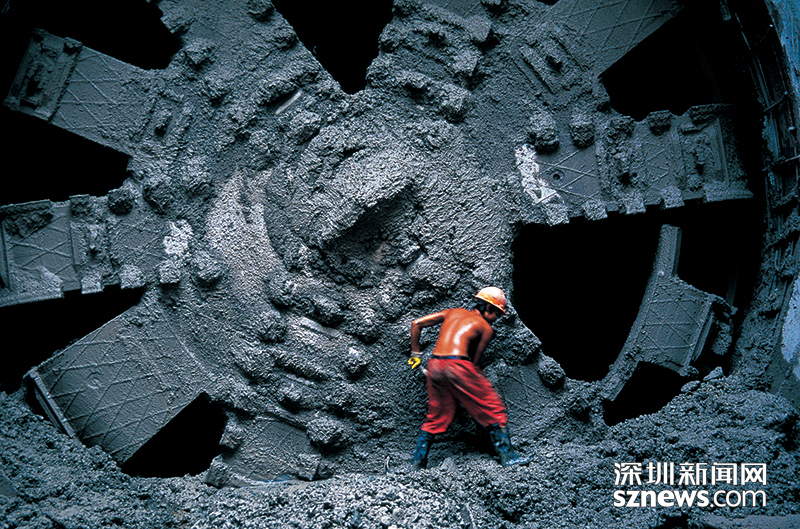 深圳地鐵的建設(shè)離不開無數(shù)人的汗水,圖中建設(shè)工人正在清理盾構(gòu)機(jī)前的淤泥