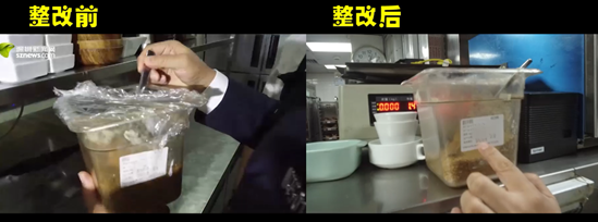 4月19日記者回訪發(fā)現(xiàn)該餐廳負(fù)責(zé)人整改態(tài)度積極,針對(duì)檢查中指出的問題進(jìn)行了逐項(xiàng)整改,包括:后廚外專門騰出一個(gè)空間擺放食材及工具,不再占用廚房區(qū)域;生熟食已做到分開放置;倉庫擺放整齊有序;消毒柜溫度已可以達(dá)到90度以上;新設(shè)置一個(gè)粗加工區(qū)與烹調(diào)區(qū)隔離開;被查封的涼菜間重新進(jìn)行了問題排查與改善。經(jīng)過轄區(qū)食藥監(jiān)管部門的復(fù)評(píng)后目前該餐廳的餐飲量化等級(jí)已恢復(fù)至B級(jí)。該餐廳負(fù)責(zé)人也向記者表示,“星期三查餐廳”不僅是檢查,還給予他們對(duì)后廚管理的手把手的指導(dǎo),提升很大,后續(xù)將繼續(xù)加強(qiáng)后廚管理,給消費(fèi)者一個(gè)安全健康的就餐環(huán)境保障。