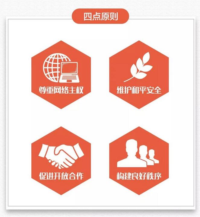 習(xí)近平曾指出,互聯(lián)網(wǎng)發(fā)展是無國界、無邊界的,利用好、發(fā)展好、治理好互聯(lián)網(wǎng)必須深化網(wǎng)絡(luò)空間國際合作,攜手構(gòu)建網(wǎng)絡(luò)空間命運(yùn)共同體。要理直氣壯維護(hù)我國網(wǎng)絡(luò)空間主權(quán),明確宣示我們的主張。為此,習(xí)近平提出“四點(diǎn)原則”和“五點(diǎn)主張”: