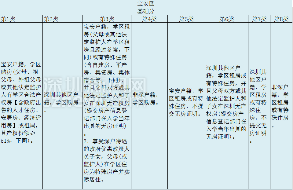 寶安公辦學校采取“先類別后積分”錄取制度,按照從第1類到第8類依次錄取,同一類學生則按照積分從高到低錄取,公辦學校招生計劃錄滿為止。