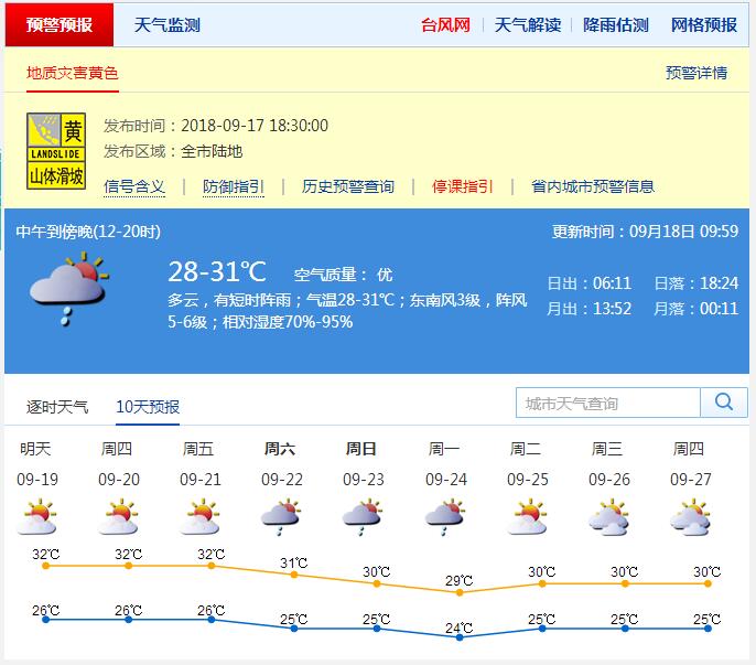 深圳新聞網(wǎng)9月18日訊(記者深圳市氣象臺(tái))據(jù)深圳市氣象臺(tái)消息,19-21日,多云間晴天,中午前后天氣炎熱,局部地區(qū)有短時(shí)陣雨;22-24日多云,有短時(shí)陣雨。