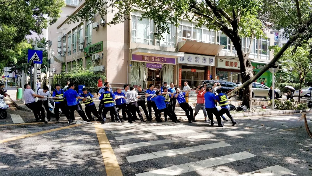 臺風造成通心嶺派出所轄區(qū)路面倒伏樹木300余棵,特別在百花片區(qū),學校、培訓教育機構相對集中,此前開通的一個車道遠遠無法滿足群眾的出行需求,上下學期間道路擁堵嚴重。