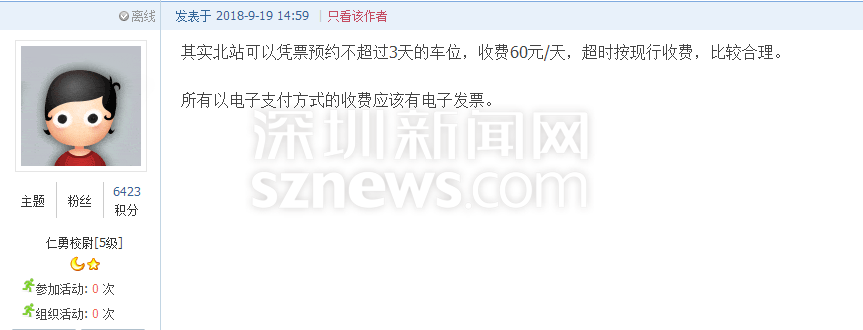 深圳新聞網(wǎng)9月21日訊(記者 施冰冰)“北站停車三天收費(fèi)412元,這不是暴利嘛?!”近日,深圳一網(wǎng)友發(fā)帖吐槽深圳北站的收費(fèi)標(biāo)準(zhǔn),他認(rèn)為深圳市中心的商業(yè)寫字樓一天封頂也不過60元,高鐵站社會(huì)停車場作為老百姓的公共交通基礎(chǔ)設(shè)施,憑什么比市中心的商業(yè)寫字樓還貴2倍多?(帖文:《 北站社會(huì)停車場作為老白姓的公共交通基礎(chǔ)設(shè)施,憑什么比市中心的商業(yè)寫字樓還貴2倍多》)