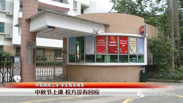 今天,記者在深圳明珠學校大門口從上午十點多一直等到中午十二點,期待校方就高三學生中秋節(jié)上課的情況,予以回應??墒牵T衛(wèi)保安多次聯(lián)系校方領導,自始至終,校方都沒有人出面接受記者采訪。
