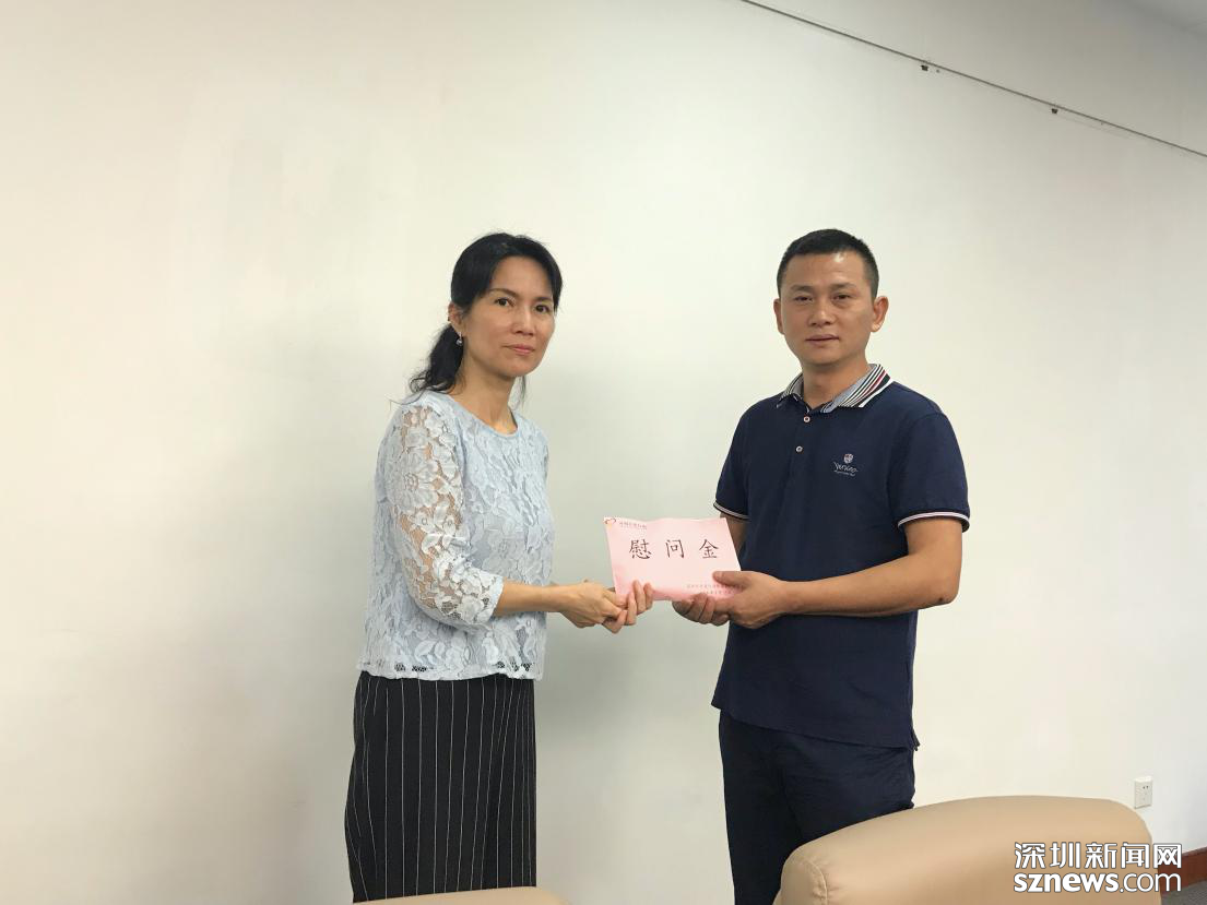 9月25日下午,深圳市關(guān)愛(ài)行動(dòng)組委會(huì)辦公室(以下簡(jiǎn)稱“市關(guān)愛(ài)辦”)和深圳市關(guān)愛(ài)行動(dòng)公益基金會(huì)在得知這一情況之后,積極響應(yīng),在深圳市教育局相關(guān)部門(mén)的大力協(xié)調(diào)下,向李得父親送上3萬(wàn)元慰問(wèn)金。市關(guān)愛(ài)辦的相關(guān)負(fù)責(zé)人叮囑李得父親,希望慰問(wèn)金可以幫其家庭渡過(guò)難關(guān),也希望學(xué)校、家庭等各方多加鼓勵(lì)孩子,樹(shù)立信心, 放下思想包袱,好好配合開(kāi)展治療,祝愿李得同學(xué)早日康復(fù),重新回到校園上課。