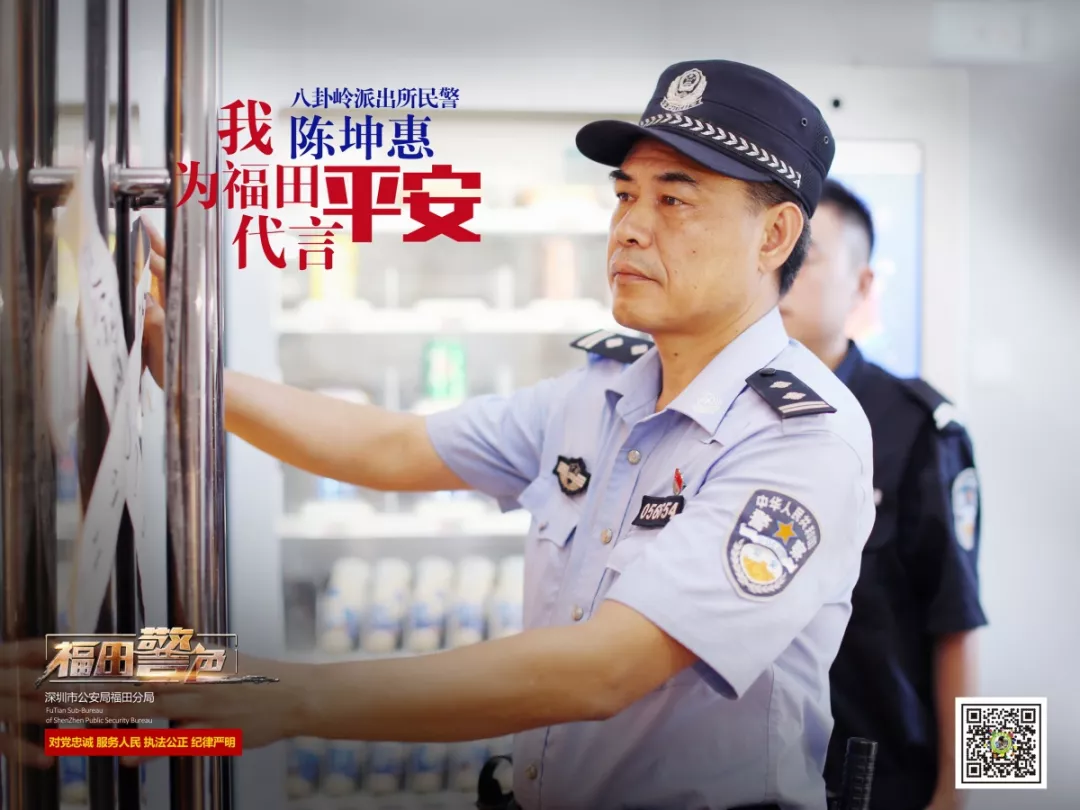 1995年,陳坤惠加入福田警隊,成為福田第一批巡警;2003年,調至八卦嶺派出所,開啟了扎根社區(qū)的警隊生涯。23年來,陳坤惠長年工作在基層一線,點點滴滴做好各項工作,甘當勤懇奉獻的“老黃?!?。