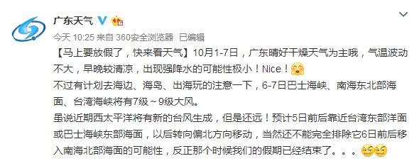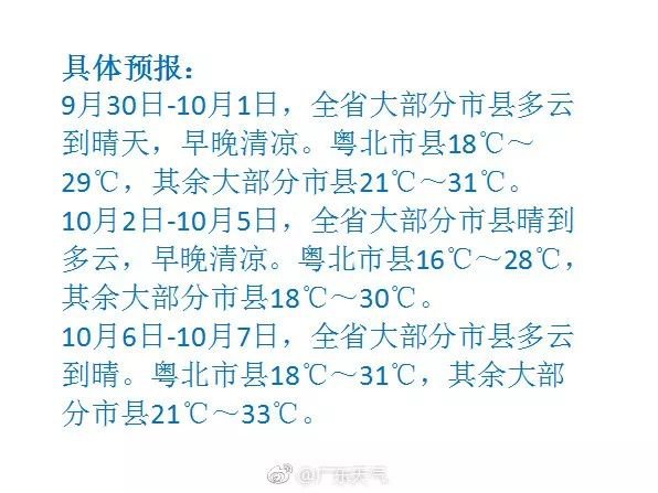 廣東國慶期間天氣不錯!