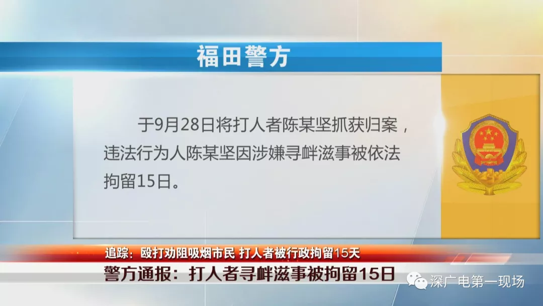 深圳一男子餐廳內(nèi)勸阻吸煙反被毆打,打人者的處罰來(lái)了!
