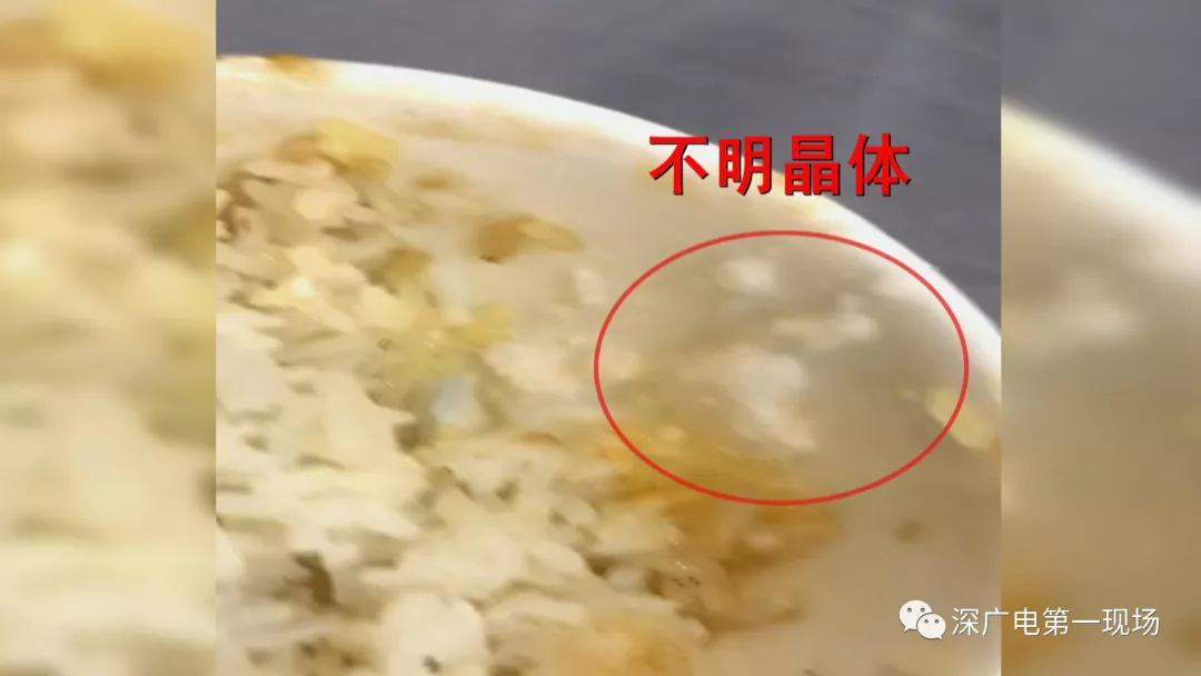再看嘴里,已經(jīng)出現(xiàn)了狀況不明的紅腫。仔細(xì)檢查米飯后,何先生和朋友在飯中摳出了不少不明晶體。