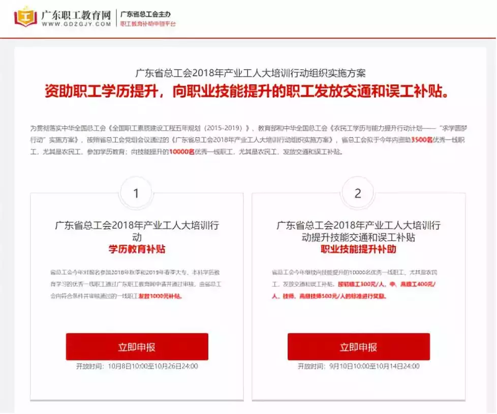 為提高我省產(chǎn)業(yè)工人隊(duì)伍素質(zhì),幫助更多產(chǎn)業(yè)工人提升技能水平,按照省總工會(huì)黨組會(huì)議通過(guò)的《廣東省總工會(huì)2018年產(chǎn)業(yè)工人大培訓(xùn)行動(dòng)組織實(shí)施方案》,省總工會(huì)繼續(xù)向10000名技能提升的優(yōu)秀產(chǎn)業(yè)工人發(fā)放交通和誤工補(bǔ)貼。取得職業(yè)資格證書(shū)可獲300~500元補(bǔ)貼,名額有限,先到先得!