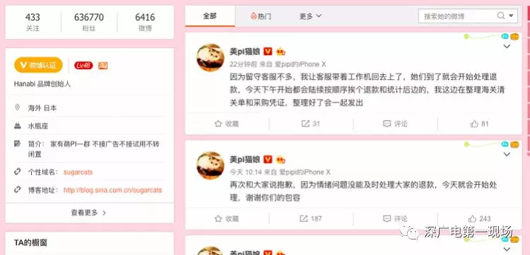 經(jīng)審訊,嫌疑人于某交代,她2013年注冊(cè)了@美Pi貓娘的微博賬號(hào),開始做彩妝的分享和解答,2016年,已擁有近30萬(wàn)粉絲的她來(lái)到深圳做網(wǎng)店,通過(guò)自己創(chuàng)立的深圳某珠寶公司做珠寶、彩妝。同時(shí),還通過(guò)微博活動(dòng)以及關(guān)愛小的動(dòng)物的善舉吸引更多的人關(guān)注,共積累了62萬(wàn)粉絲。