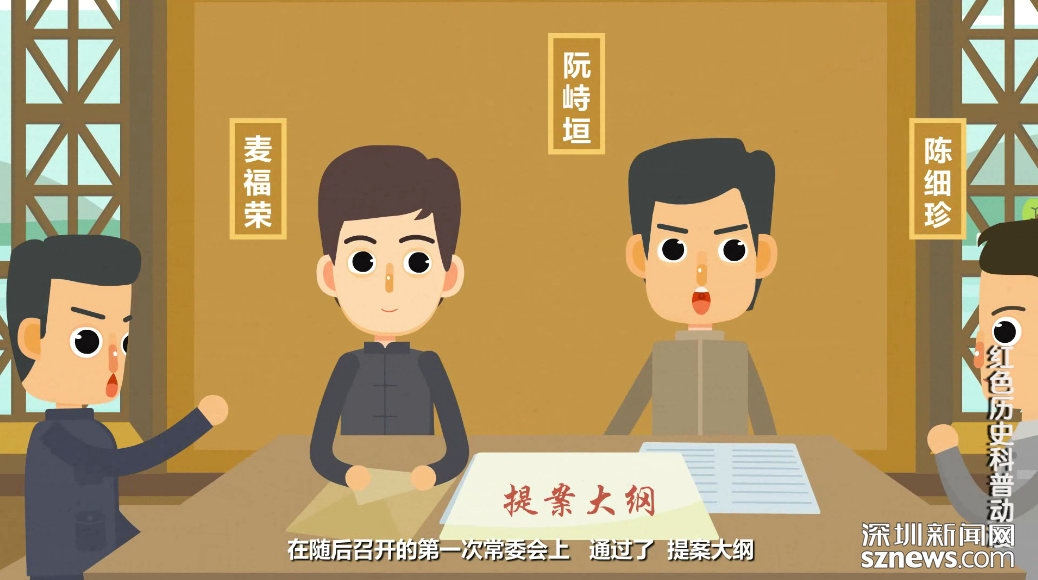 該動畫片圍繞中共寶安縣第一次黨員代表大會作了重點講述。1928年2月23日,根據(jù)廣東省委的指示,中共寶安縣委在燕川素白陳公祠召開第一次黨員代表大會。大會認真總結廣州起義失敗的原因和教訓,克服悲觀主義和盲動主義,建立新的領導核心,選舉產生了中共寶安縣第三屆委員會。在隨后的召開的第一次常委會上,通過了《提案大綱》,決定重新整頓各級黨組織,進一步發(fā)展黨員;加強宣傳工作,創(chuàng)辦農民學校、夜校、翻印《紅旗》、《布爾什維克》等黨內刊物及各種宣傳品。