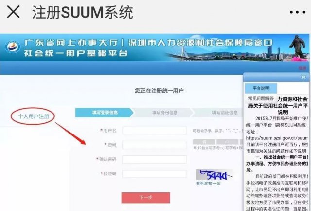 3、若無,點(diǎn)擊"新用戶注冊(cè)",進(jìn)入到深圳市人力資源和社會(huì)保障局社會(huì)統(tǒng)一用戶基礎(chǔ)平臺(tái)(https://suum.szsi.gov.cn/suum)。