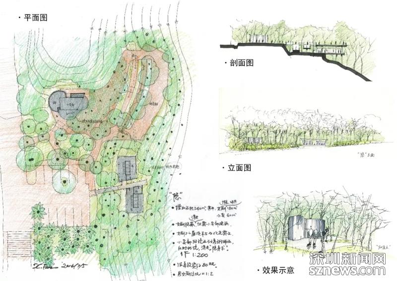 費(fèi)曉華應(yīng)公園管理處之邀為山頂公廁設(shè)計(jì)的改擴(kuò)建方案之一,隱擴(kuò)方案(圖紙來自雅本建筑微信公眾號)