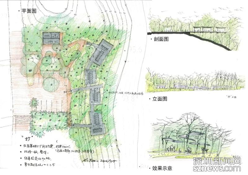 費(fèi)曉華應(yīng)公園管理處之邀為山頂公廁設(shè)計(jì)的改擴(kuò)建方案之一,顯擴(kuò)方案(圖紙來自雅本建筑微信公眾號)