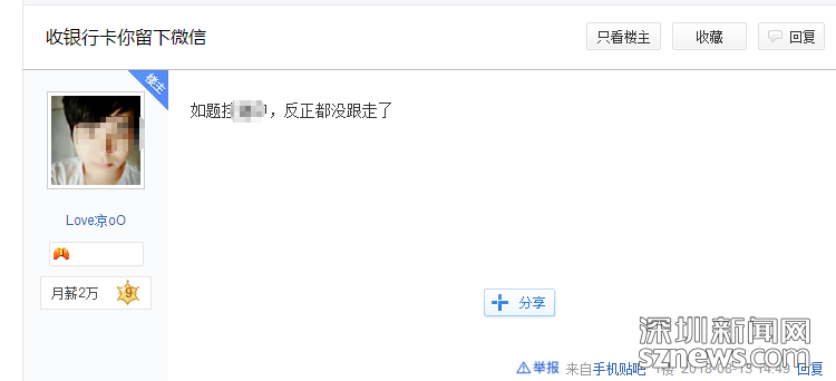 深圳新聞網(wǎng)11月5日訊(記者 何暢)“百度貼吧龍華吧上面充滿色情、微信買賣,公然收身份證,小額貸等,沒(méi)人管?”,近日網(wǎng)友在深圳論壇上曝料百度貼吧“龍華吧”內(nèi)存在大量違法違規(guī)信息,引起網(wǎng)友廣泛關(guān)注。(網(wǎng)帖地址:https://szbbs.sznews.com/thread-3812582-1-1.html)